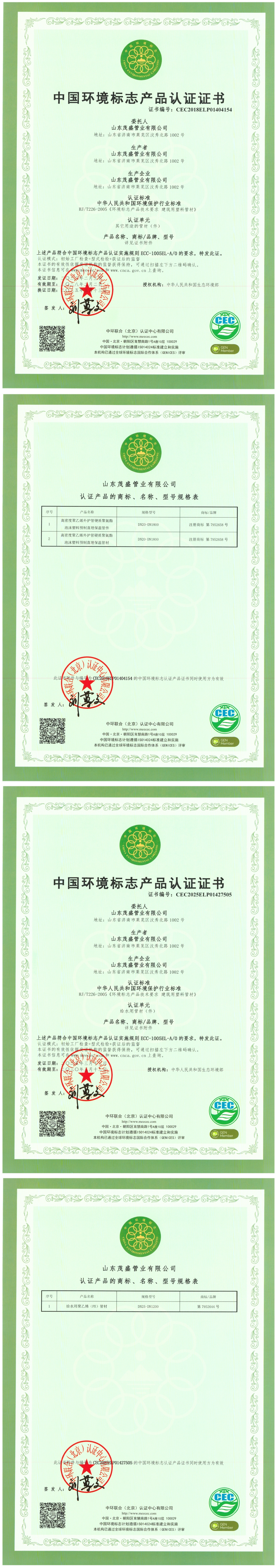 中国环境标志产品认证证书