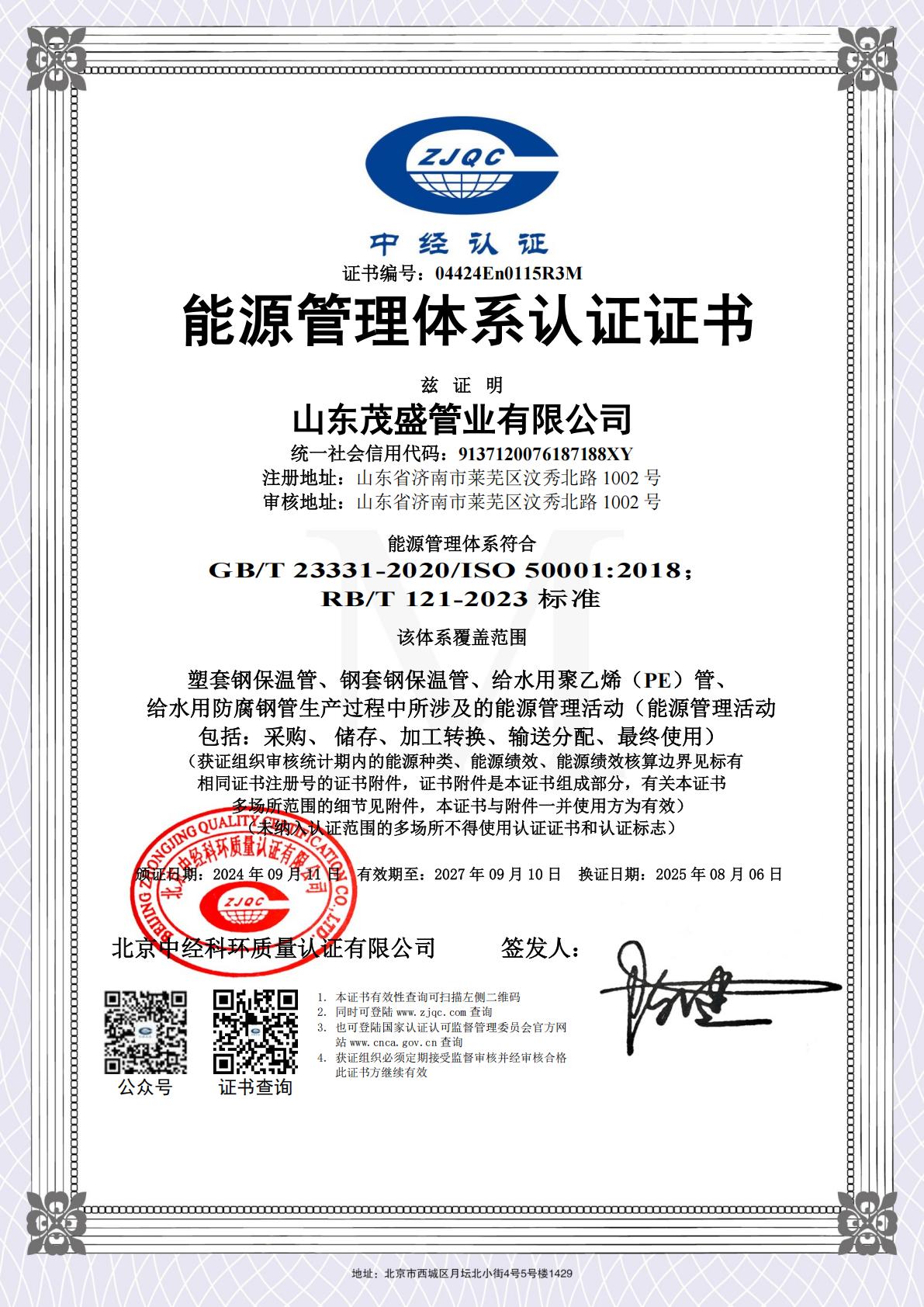 能源管理体系认证证书